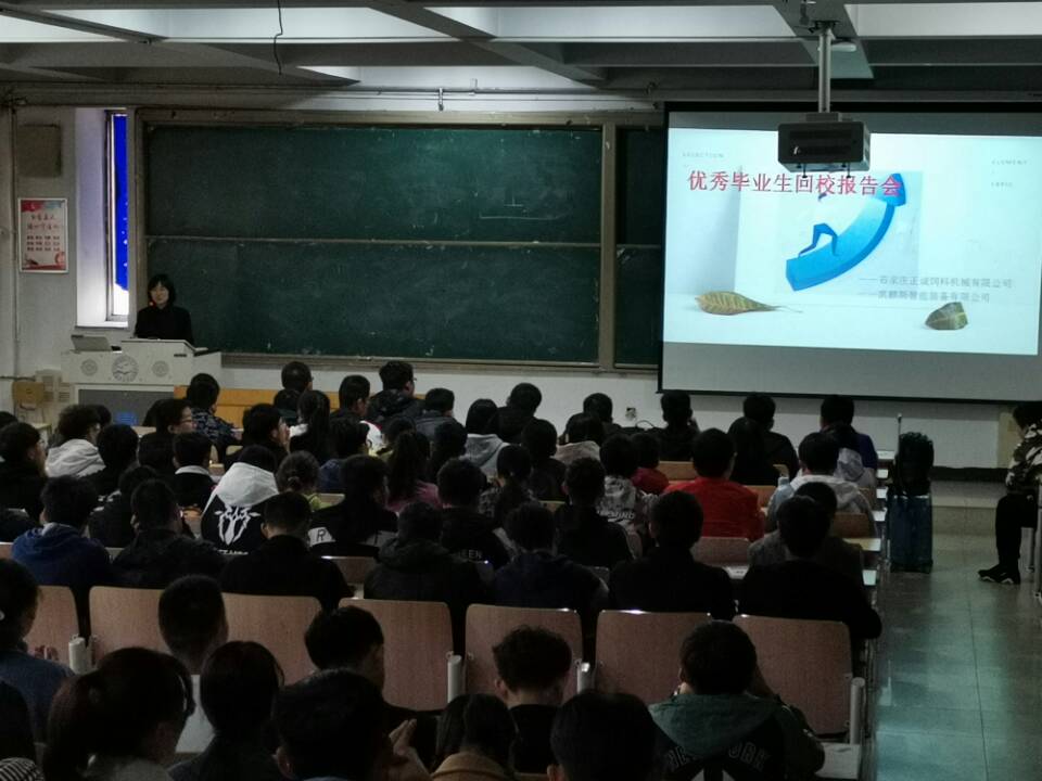 2019年10月26日下午,在公司主教学楼B105教室,召开了一场石家庄正诚饲料机械有限公司组织的优秀毕业生回校报告会。