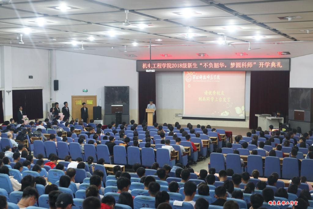朗朗金秋,丹桂飘香。9月27日下午,2018级新生“不负韶华,梦圆科师”开学典礼在昌黎校区学术报告厅隆重举行。机电公司领导班子、全体教职工、373名全体新生参加了开学典礼。