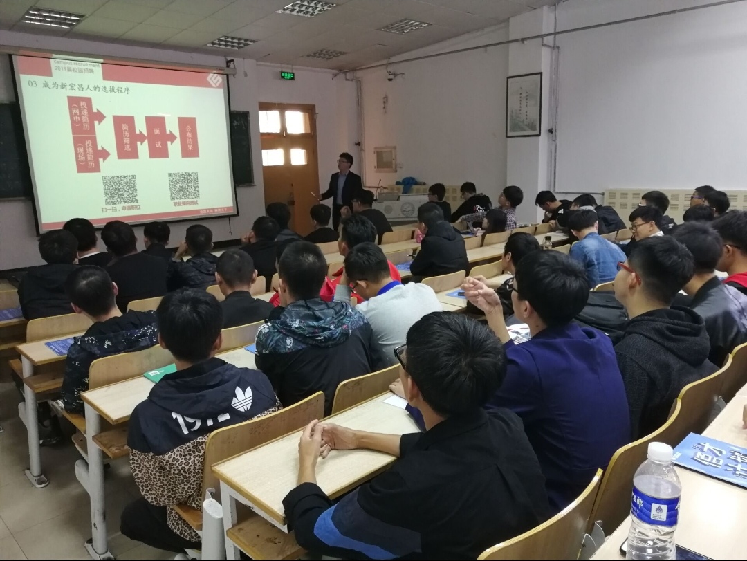 2018年10月9日,伟德BV官网在主楼B104教室举行了新宏昌重工集团就业指导专题讲座,公司负责人为同学们讲述了公司的经营方式和专业服务,并说明了公司的集团概况、发展历程、组织架构和产业方向等,详细介绍了公司的背景、理念和职业路径发展方向,并就招聘标准要求及招聘职位等进行说明。