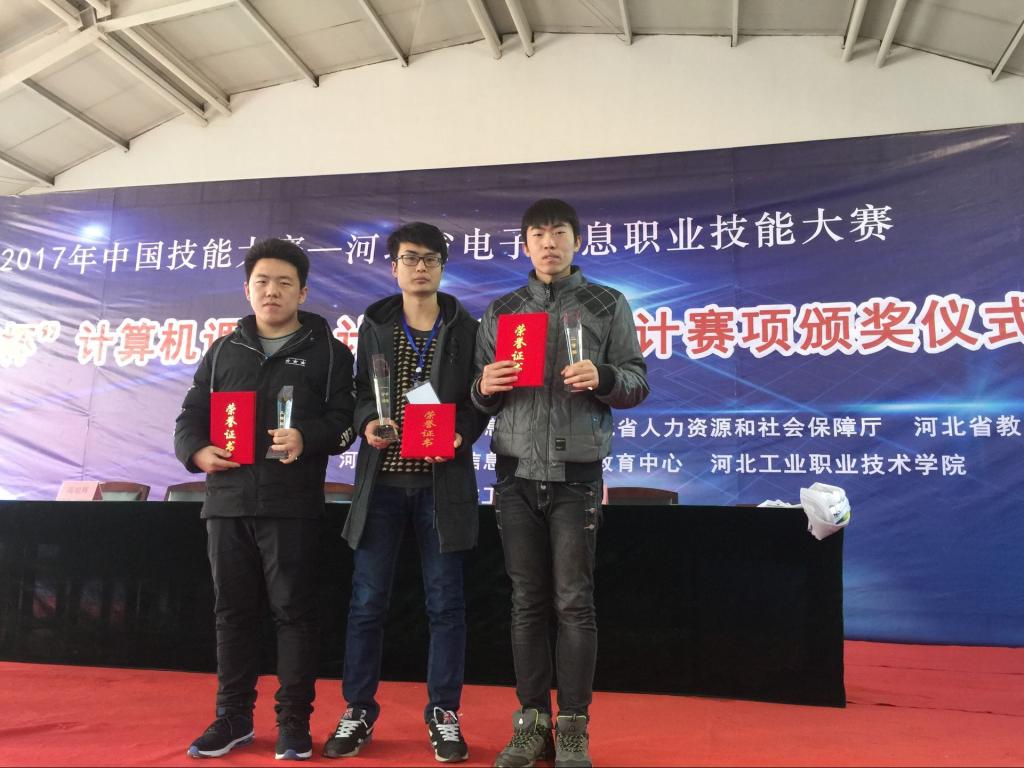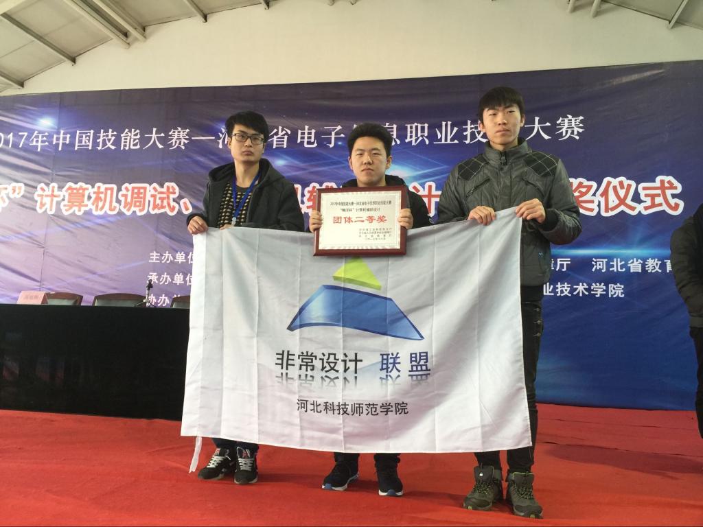 2017年12月16日,“2017年中国技能大赛——河北省电子信息职业技能大赛”在河北工业职业技术公司拉开帷幕。由机电公司陈芳老师带领张磊、杜江山、潘家鑫三名同学组成的团队,参加了“计算机辅助设计”项目的角逐,并取得佳绩,荣获团体二等奖1项、个人一等奖1项、个人二等奖1项、个人三等奖1项。