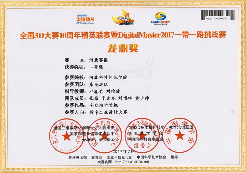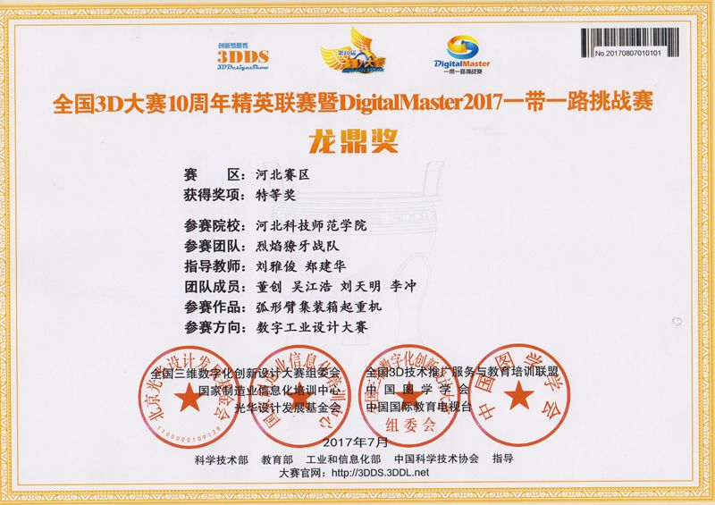 为参加全国3D大赛,伟德BV官网组建了由机制专业和农机专业的同学4支团队,在邓春岩、刘雅俊、张小芹等老师的精心指导下,综合运用所学的机械制图和三维建模技术,精心设计,积极创新。近日,经全国相关领域专家和教授评审,荣获大赛(河北赛区)特等奖1项、二等奖3项。