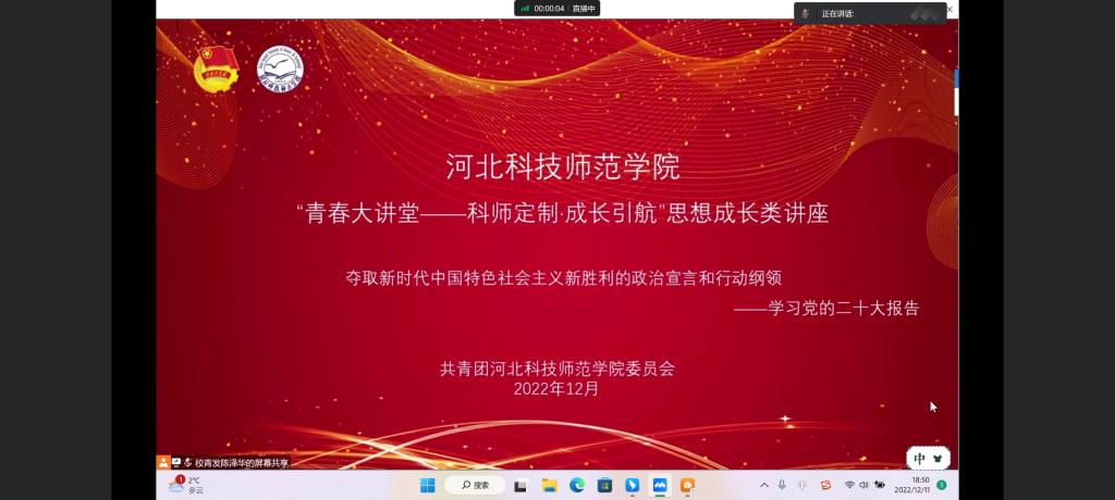 2022年12月11日晚,伟德BV官网开展青春大讲堂思想引领类讲座本次讲座学习党的二十大报告讲解了关于夺取新时代中国特色社会主义新胜利的政治宣言和行动纲领