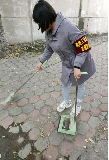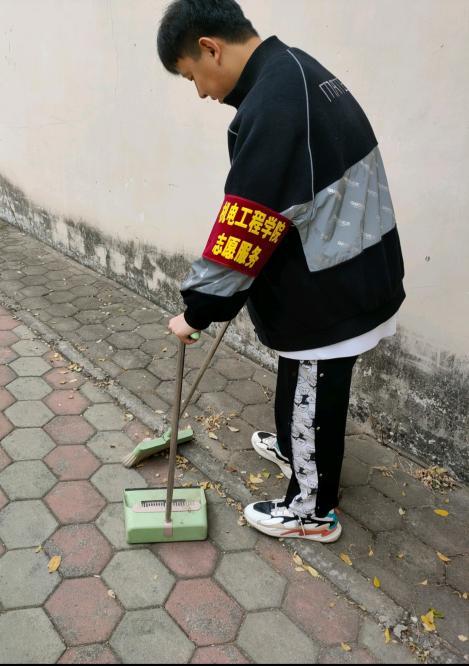 校园的角角落落里,志愿者们有的拿着扫把卖力的扫着,有的蹲在地上认真清理角落的垃圾、杂物等。 张天强、郭增辰等志愿者们热情高涨,拿着扫帚等工具清扫落叶,草坪内垃圾他们不怕苦,不怕累放过任何一处垃圾,任何一块“牛皮癣”。