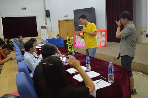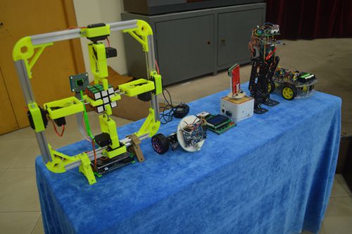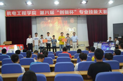 通过层层选拔,共有十一支队伍晋级本次决赛。参赛作品主要有超声轴向震动钻削装置、智能机器人、一体化柑橘剥皮机、两轮平衡车、魔方机器人等。参赛队伍经过作品展示、现场答辩等环节的比拼后大赛评委现场进行了精彩的点评。最终,电子设计组和工业与工程设计组分别评选出一二三等奖各一名,其中一体化柑橘剥皮机、魔方机器人分别获一等奖。