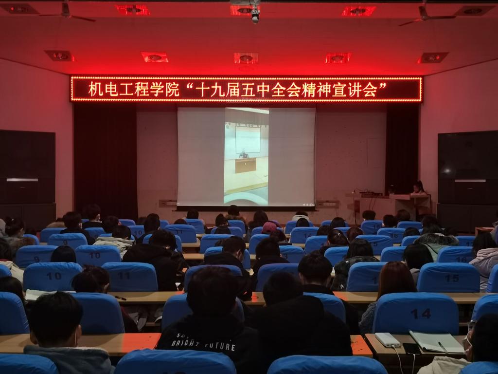 2020年12月3日,河北团省委 “ 走基层 ” 宣讲团成员柴勇教授在主校区进行十九届五中全会精神宣讲,机电公司参加团校培训的同学在学术报告厅通过观看直播的方式集中进行了学习。